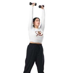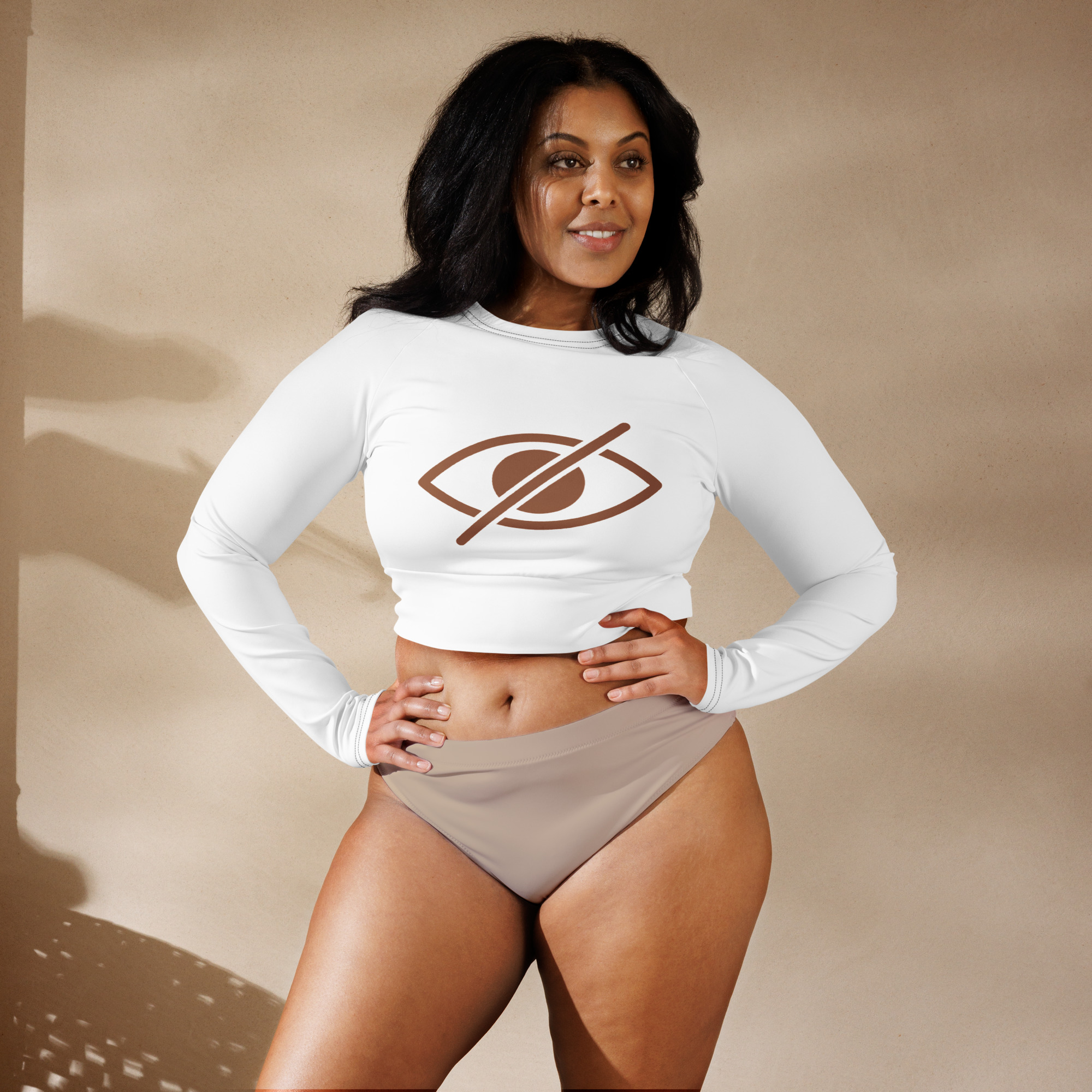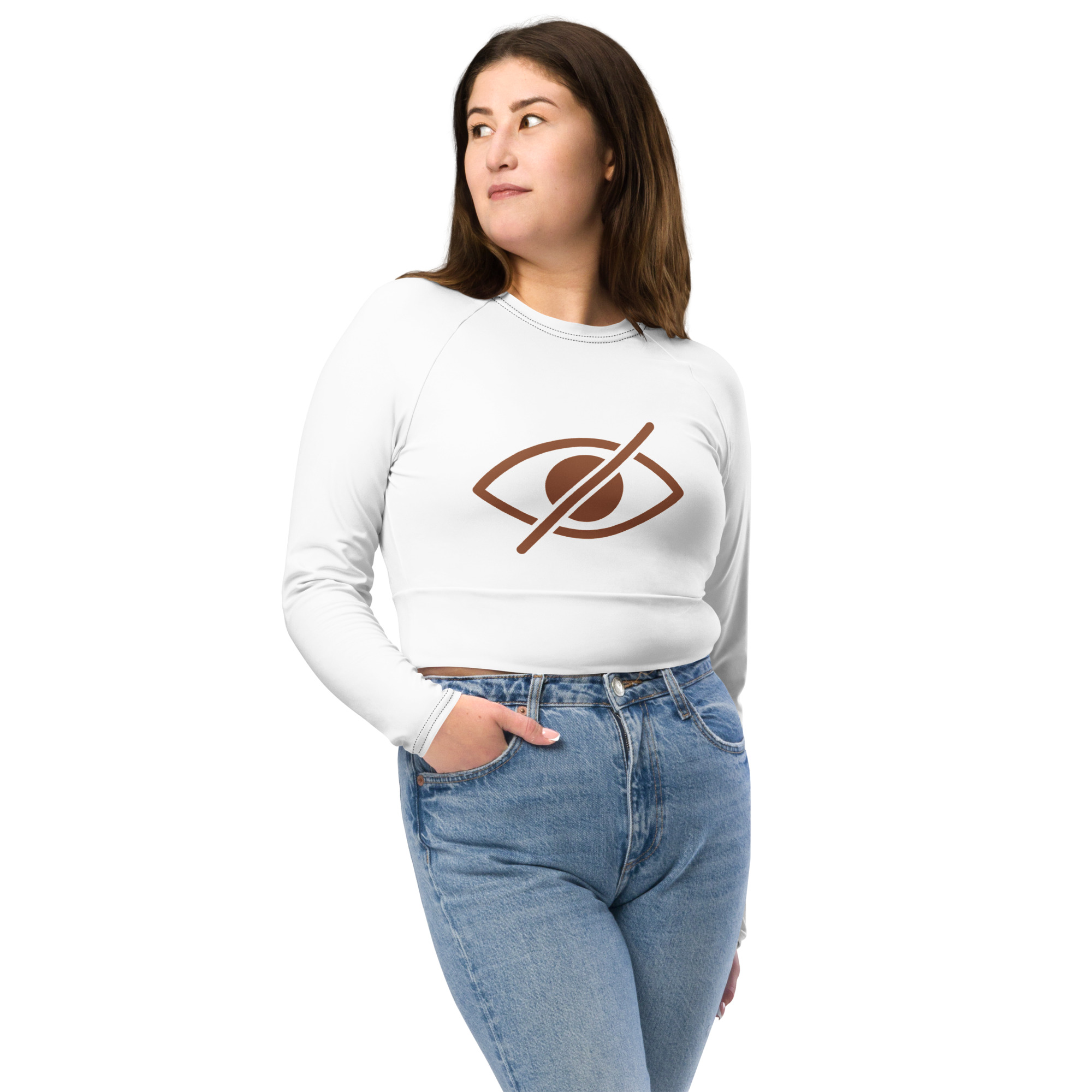 This long-sleeve crop top is made of recycled polyester and elastane, making it an eco-friendly choice for swimming, sports, or athleisure outfits. The crop top has a tear-away care label and a wide, double-layered waistline band for a comfortable fit.