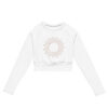 Look fabulous in an all-over printed, body-hugging crop top.