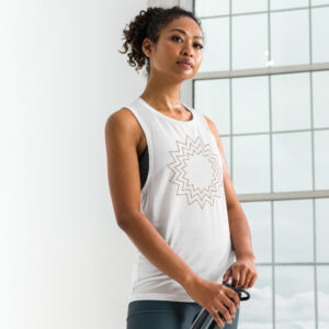 This comfortable muscle tank is soft and flowy with low cut armholes for a relaxed look.